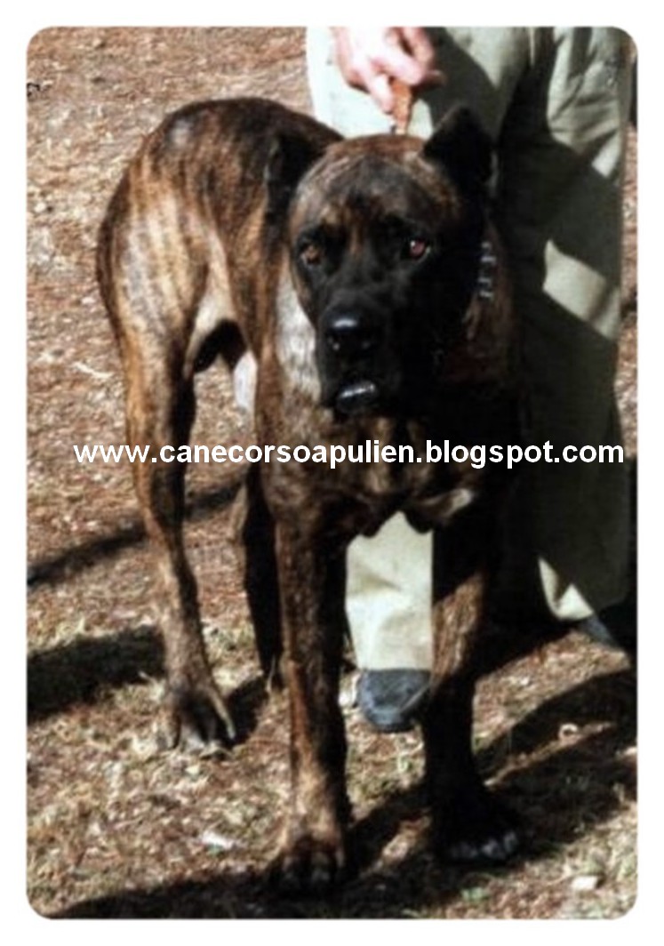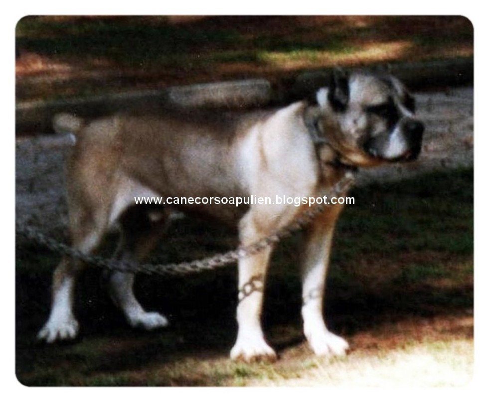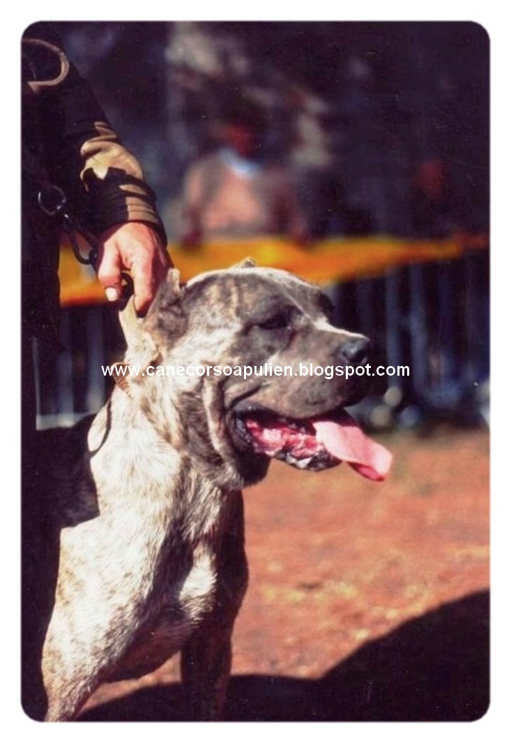 "... Par exemple ce standard accepte le prognathisme, qui à mon avis n'a jamais existé chez le cane corso, mais qui accentué ces dernières années, probablement dû aux fruits de certains croisements effectués par ces nouveaux éleveurs, qui pour amélioré la race ont accouplés des corsi avec des boxer ou d'autres chiens. Ce système donne effectivement rapidement de beaux résultats, très ressemblant à ce que nous recherchons, mais qui en réalité ne produisent pas de vrais cani corsi. ..."