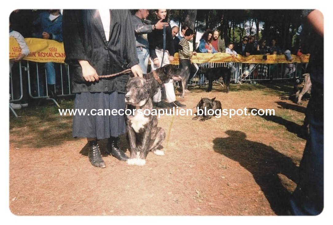 - Présentation de la race à l'exposition Européenne de Vérone juge Vittorio DAGRADI. Pour cette occasion la S.A.C.C. distribua un écrit intitulé "CANE CORSO Résumé des caractéristiques Morphologiques". Dans cette brochures avait été faites arbitrairement une variation du standard p. 1 dans la partie finale décrivant le museau était écrit : Denture légèrement prognathe ( tenaille et ciseaux toléré). Ce résumé sera également proposé dans quelques articles parut dans la revue spécialisé "Cani di razza" édition Olimpia décembre 1994, dans Works Dogs parut en mars 1995 causant de nombreuses confusions.